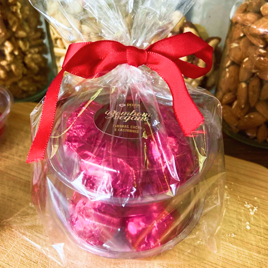 O Bombom Vegano é uma explosão de sabor e energia natural, feito apenas com ingredientes nobres e funcionais. Adoçado exclusivamente com frutas secas, esse bombom combina a intensidade do cacau 100% com a cremosidade das castanhas e o dulçor natural das tâmaras orgânicas. Uma opção saudável e deliciosa para quem busca um doce nutritivo, sem abrir mão do sabor.